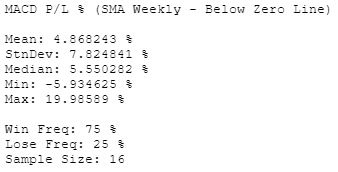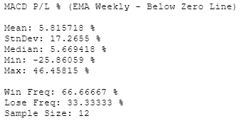 Keep in mind that weekly timeframe trades for the Below Zero Line test were not able to take enough trades to able to be garner a large sample size. The following observations have been made: